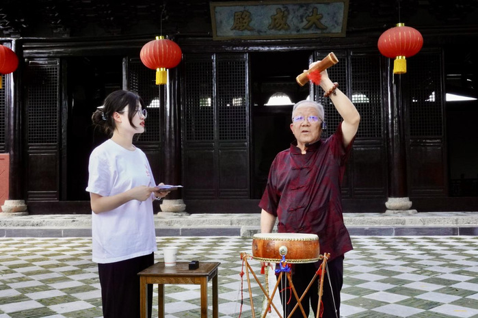 在唐山鎮(zhèn),團隊尋訪了紫金制作工藝省級非遺傳承人邱金保,通過訪談,全面了解了紫金硯制作的復(fù)雜工藝,深刻體會到這一傳統(tǒng)技藝背后的歷史積淀。在壽縣老文化館,團隊專訪了壽州大鼓省級非遺傳承人魏明華與口技快板非遺傳承人李勛,兩位老師以精彩紛呈的表演,充分展現(xiàn)了壽縣傳統(tǒng)曲藝的獨特魅力。然而,團隊成員也了解到,非遺傳承正面臨著人才短缺、后繼乏力等嚴(yán)峻形勢,這引發(fā)了他們對傳統(tǒng)文化保護與傳承的深刻思考。