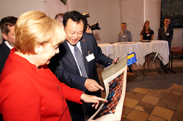 雙方致辭后,默克爾與許琳等共同為孔子學院揭牌,這是默克爾本人及德國現任總理首次為孔子學院揭牌。