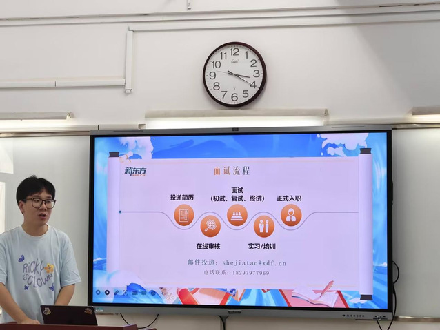 參加本次招聘宣講會的是新東方合肥學(xué)校的佘經(jīng)理,經(jīng)理向在座求職學(xué)生全面介紹了公司的企業(yè)文化、發(fā)展歷程、業(yè)務(wù)布局、技術(shù)實(shí)力以及未來發(fā)展規(guī)劃。特別是針對即將步入社會的畢業(yè)生們,公司詳細(xì)介紹了招聘崗位、薪資福利、職業(yè)晉升路徑等大家關(guān)心的內(nèi)容,讓在場學(xué)生受益匪淺。
