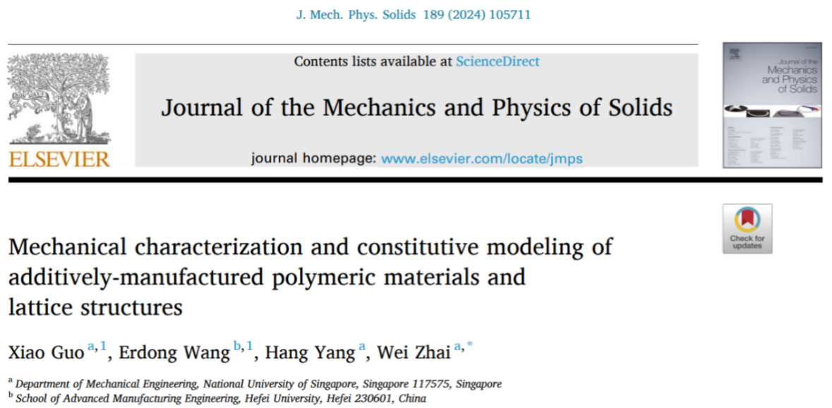 近日,我院機械工程系青年教師王二冬在增材制造聚合物基體材料和晶格結構的力學特性和本構模型方面取得重要進展,相關研究成果以“Mechanical characterization and constitutive modeling of additively-manufactured polymeric materials and lattice structures”為題,在固體力學頂級期刊《Journal of the Mechanics and Physics of Solids》上發表。該論文的共同第一作者為我院教師王二冬和新加坡國立大學郭笑博士,以及共同作者新加坡國立大學楊航博士后,通訊作者為新加坡國立大學翟瑋教授。