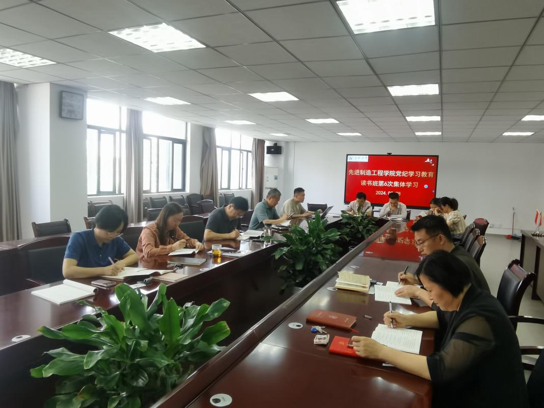 2024年5月28日上午,先進制造工程學院黨委在學院40#305會議室開展黨紀學習教育讀書班第六次集體學習,全體班子成員、科級干部及學院各支部書記參加讀書班。