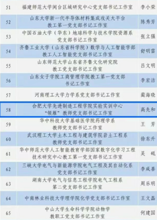 近日,教育部公布了第三批高校“雙帶頭人”教師黨支部書記工作室建設(shè)名單,合肥大學(xué)先進制造工程學(xué)院實驗實訓(xùn)中心黨支部高先和書記“領(lǐng)雁”工作室成功入選,這是學(xué)校首次入選全國高校“雙帶頭人”教師黨支部書記工作室。