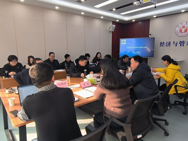 2024年1月6號下午,經濟與管理學院于一期四棟二樓會議室召開國際商務專碩點申報專家論證會,本次論證專家組包括:安徽大學商學院前院長杜鵬程教授、安徽財經大學工商管理學院院長胡登峰教授、合肥工業大學經濟學院副院長張先鋒教授和安徽大學經濟學院副院長華德亞教授。陳江華院長主持會議。學院十余位領導和老師參與會議。
