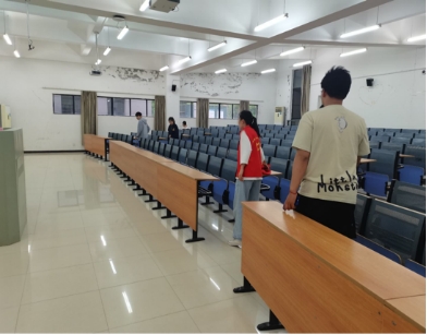 “共創文明校園,營造溫馨食堂”活動中,我院志愿者一絲不茍地整理、清潔生化樓教室,擦拭黑板、擺放桌椅、打掃地面……不落下任何一個角落,為同學們營造學習環境。