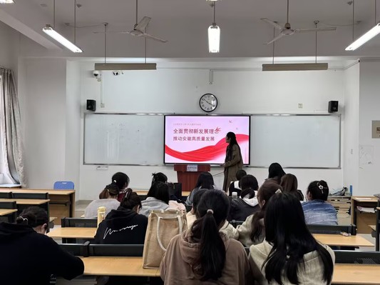2024年1031小教黨支部于3棟106教室召開本月主題黨日活動,圍繞“全面貫徹新發(fā)展理念,推動安徽高質量發(fā)展”這一主題,深入學習并討論了新時代背景下安徽發(fā)展的新機遇與新挑戰(zhàn)。此次活動不僅加深了同學們對黨的理論政策的理解,更激發(fā)了他們?yōu)榘不瞻l(fā)展貢獻力量的熱情。