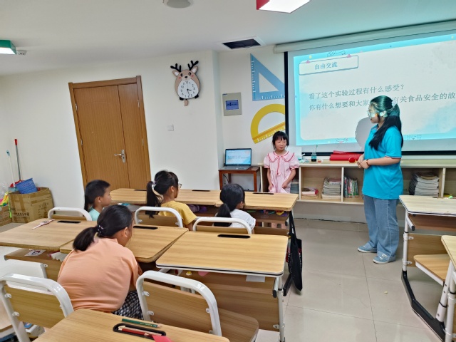 78日下午,合肥學院教育學院“七彩童年,‘育’你相伴”志愿團隊來到濱湖和園社區開展社會實踐活動,志愿者侯鑫宇作為授課老師為孩子們帶來一堂以“身心成長”為主題的飲食健康課程。