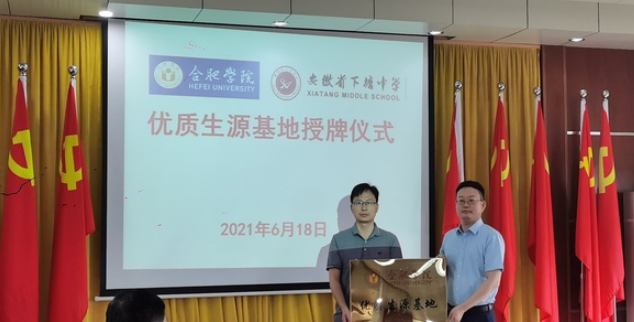 2021年6月18日,合肥學院旅游與會展學院院長劉力帶領旅游管理系、會展經濟與管理系教師赴長豐縣,與長豐縣下塘中學開展優質生源基地共建活動。