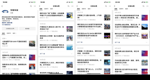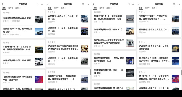 在工作前期階段,兩位同學(xué)主要負(fù)責(zé)運營安徽車展公眾號。每天的主要任務(wù)便是完成既定日常專題的公眾號稿件。此外如有車展同期活動主辦方發(fā)來宣傳文案,也需要進(jìn)行活動稿件的撰寫,累計撰寫公眾號宣傳文案達(dá)六十余篇。在此期間,兩位同學(xué)也深入接觸到與各類活動負(fù)責(zé)人溝通交流的機會,并表示活動對接時需要極大耐心,謹(jǐn)小慎微,反復(fù)確認(rèn),不能忽略掉一個細(xì)枝末節(jié),因而也不斷提高了自己的語言組織與表達(dá)能力。