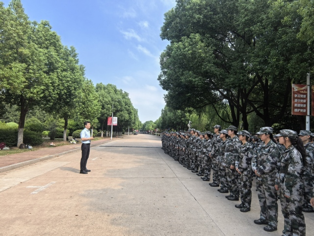 孫靜宇首先對新同學的到來表示熱烈的歡迎,并向全體教官表示衷心的感謝。他表示,國防是國家生存與發展的基石,軍訓是增強國防觀念、鍛煉體魄、磨礪意志的重要途徑。通過軍訓,讓同學們在鍛煉體魄與技能、磨煉意志和品質、增強組織紀律觀念的同時,繼承和發揚艱苦奮斗的優良傳統,樹牢愛國之心、報國之志。他要求新生們提高認識,端正態度,嚴守紀律,聽從指揮,發揚團結協作精神,以飽滿的熱情投入軍訓,展現新時代青年的擔當與風采。同時,學校也將全力保障軍訓順利進行,確保同學們的安全與健康。